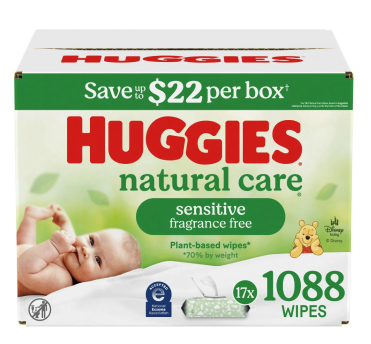 - Product Description: 17 flip-top packs of 64 Huggies Natural Care Sensitive Baby Wipes, Unscented (1088 wipes total)