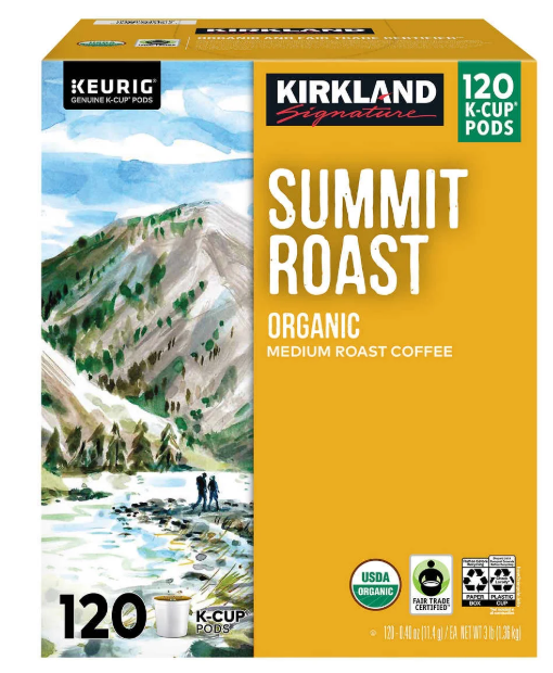 Kirkland Signature Coffee Organic Summit Roast K-Cup Pod, 120-count