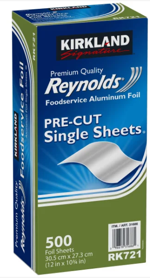- This package contains 500 Kirkland Signature Reynolds Foodservice pre-cut pop-up aluminum foil sheets, measuring 12 inches x 10.75 inches