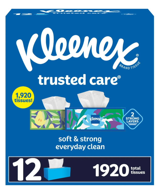 Kleenex Trusted Care 2-ply Facial Tissues 12 boxes, 160 tissues/box