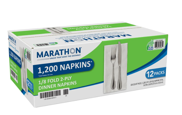 Marathon 1/8 Fold 2-Ply White Dinner Napkin, 12 pks., 100 napkins/pk.