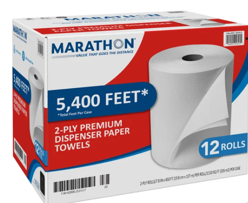 Marathon Dispenser Paper Towels, 2-Ply, 450 ft Rolls, 12-count