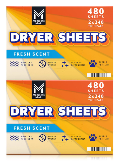Member's Mark Fabric Softener Dryer Sheets, Fresh Scent, 480 ct.