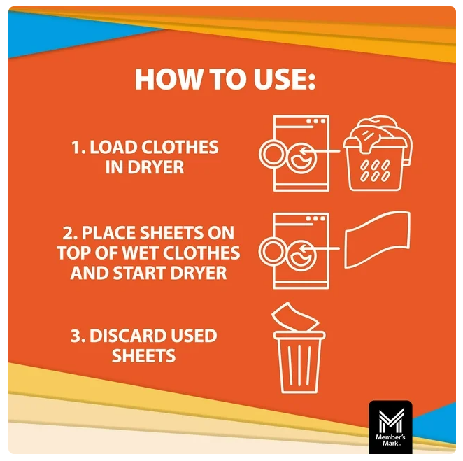 These Member's Mark dryer sheets offer long-lasting freshness, soften fabrics, and help repel hair and lint. Use one dryer sheet for small loads to fight against static and add freshness to your clothes and linens. Two dryer sheets can be used for regular loads for extra static protection and more of the fresh scent and softness. Use three sheets for large loads to repel lint, add softness to your laundry, and fight annoying static. For the best results, add a fresh dryer sheet on top of your clothes before you start drying. These fabric sheets are not recommended for re-use.