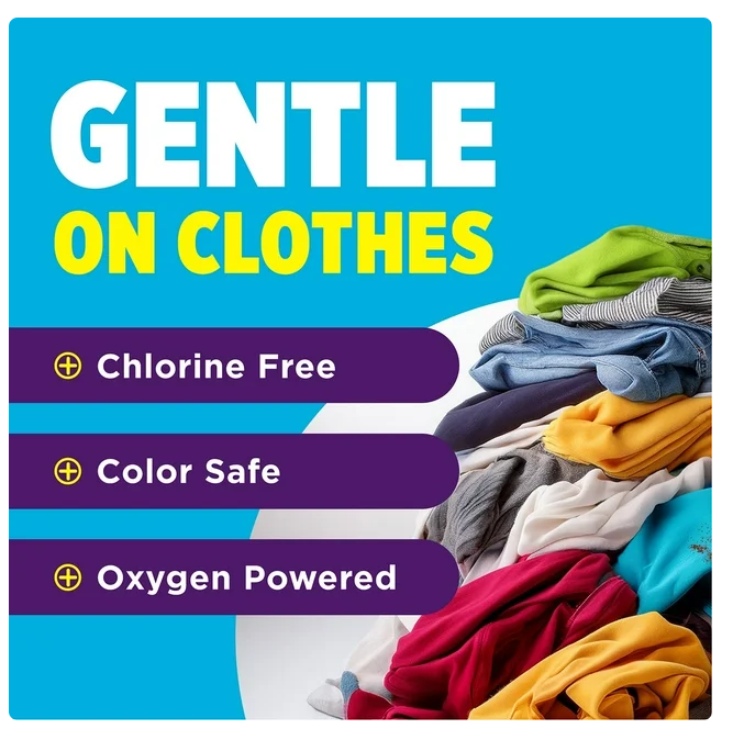 OxiClean Max Efficiency Odor Blasters Versatile Odor and Stain Remover Powder packs the same stain-fighting power you love from OxiClean, now with odor elimination and 35% more powder. This chlorine-free, color-safe formula attacks tough stains, including grass, grease, dirt, wine, and blood, while eliminating odors like sweat, musty towels, and body odor.