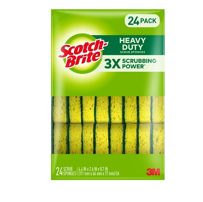 One package contains 24 individually wrapped sponges, so you can buy them in bulk and not have to make a trip to the store every time you need to replace your sponges. Stock up your cleaning supplies with Scotch-Brite Heavy Duty Scrub Sponges and see why Scotch-Brite is the beloved cleaning brand for many households. Please note that some product packaging of the scrubbing sponges may look different from the images displayed.