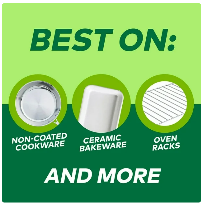 - Safe on non-coated cookware, oven grates, concrete floors, and more