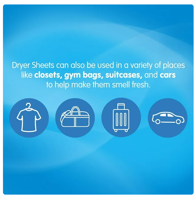 - Dryer sheets keep closets, gym bags, suitcases, and cars smelling fresh