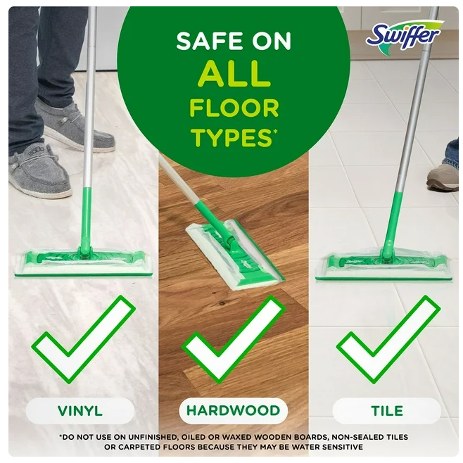 Swiffer Heavy Duty Dry Cloths are safe for use on all floor types, including tile, hardwood, and vinyl flooring. They are also particularly effective on grout and other challenging surfaces. For a comprehensive cleaning solution, try Swiffer Sweeper Heavy Duty Wet Cloth Refills to make mopping floors a breeze. These cloths combine the cleaning power of a mop with the convenience of a wipe. For best results, use these cloths with Swiffer Sweeper and Swiffer Sweep + Vac.