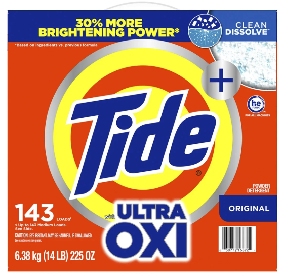Sit back, relax, and let Tide do the hard work for you. With Tide, you can trust that your laundry is in safe hands. For generations, Tide has been the go-to choice for millions of households, delivering impeccable cleaning results time and time again. Experience the cleaning power of Tide Ultra Oxi Power HE Powder Laundry Detergent and elevate your laundry routine to new heights of cleanliness and freshness. *vs. Tide Original