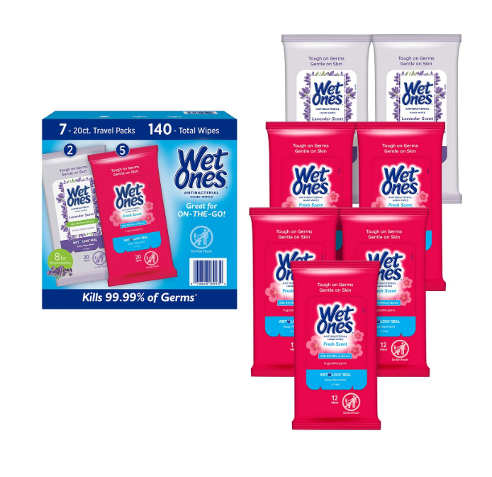 Wet Ones Antibacterial Hand Wipes, Fresh Scent & Lavender, 20 ct., 7 pk.