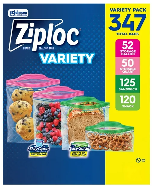 Ziploc Easy Open Bags Variety Pack with New Stay Open Design, 347 ct.