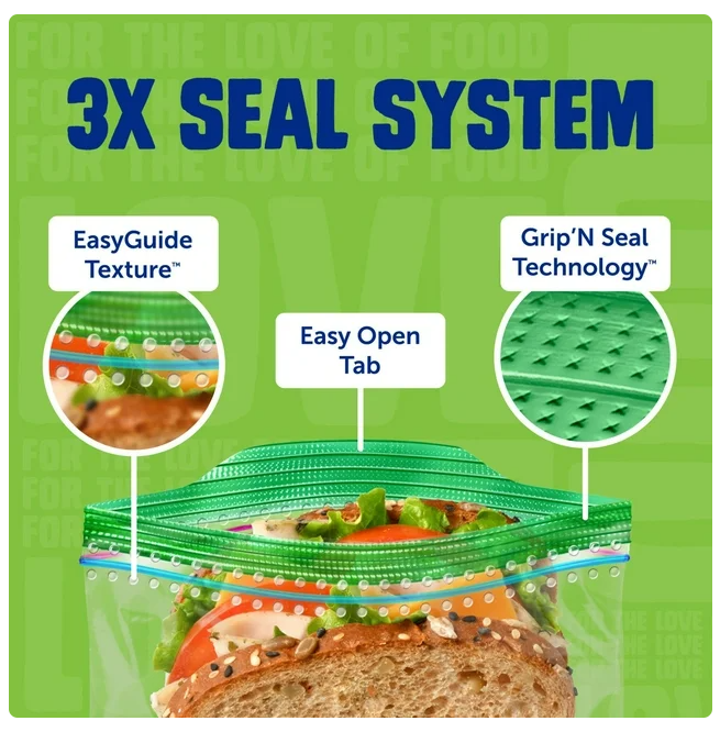 - New EasyGuide Texture Sandwich bags are easy to zip with no slip and a secure seal