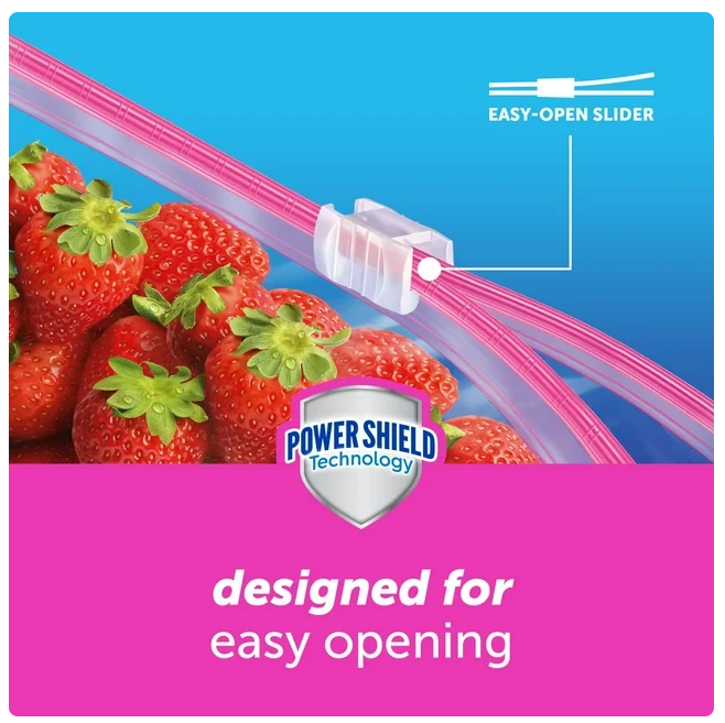 Keep your food fresh with Ziploc Brand Slider Storage Bags. Each bag features a slider closure and an expandable bottom that opens into a flat base–helping the bag stay upright so it's easy to fill. Plus, these bags feature our Smart Ziploc seal–it let's you hear the bag close so you can feel confident your food is protected. Ziploc is a participating partner in Box Tops for Education, which allows members to earn money for their schools for the things they need.